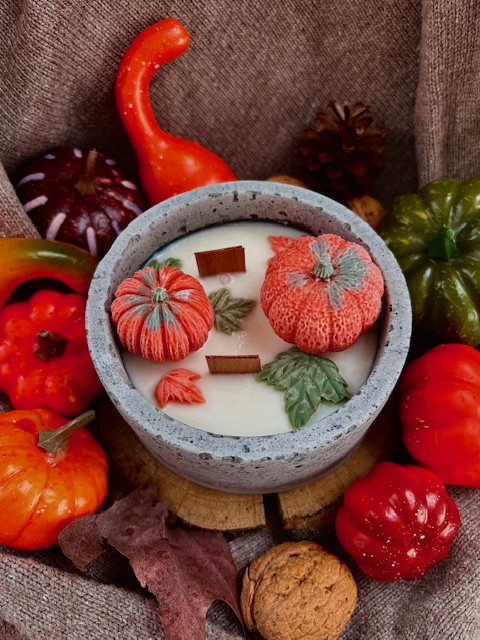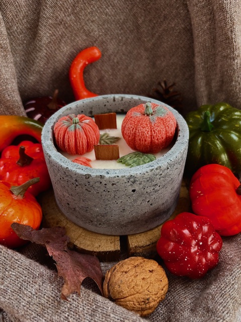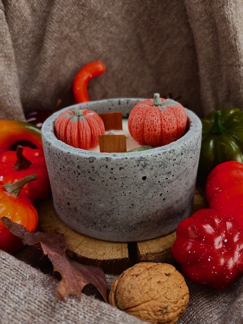 Wyobraź sobie pierwszy chłodny poranek, kubek gorącej kawy w dłoni i zapach świeżo upieczonego ciasta dyniowego unoszący się w powietrzu. Tak pachnie Jesienny Zawrót Głowy- nasza świeca, która zamyka całą magię jesieni w jednym betonowym pojemniku.
